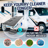 - The PERFECT OVERALL DIMENSIONS (22" Wide x 20" Long) allow you to install it on your 8-11" deep RADIUS STEPS IN SECONDS! The included 4 springs allows you to adjust the cover to VARYING DEPTH STEPS! Keep your RV or Camper CLEANER in one simple step! No more dirty shoes dragging dirt into your RV/Camper! The UV-resistant fabric prevents color fade and is SUPER EASY TO CLEAN, simply wash with soapy water and rinse!